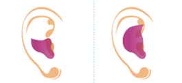 The microphone and amplifier of the hearing device is still contained in a compact shell that rests behind your ear. Sound is delivered to your ear through a small ear bud, rather than a moulded form that fills the canal. The ear bud leaves some of the ear canal open and can give a more “natural” sense to assisted hearing.